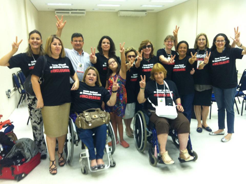 O pessoal do Fórum Nacional de Educação Inclusiva no VI Congresso Brasileiro de Síndrome de Down, ocorrido em outubro de 2012. Pirica, em cadeira de rodas, à direita. Nossa irmã de lutas.
